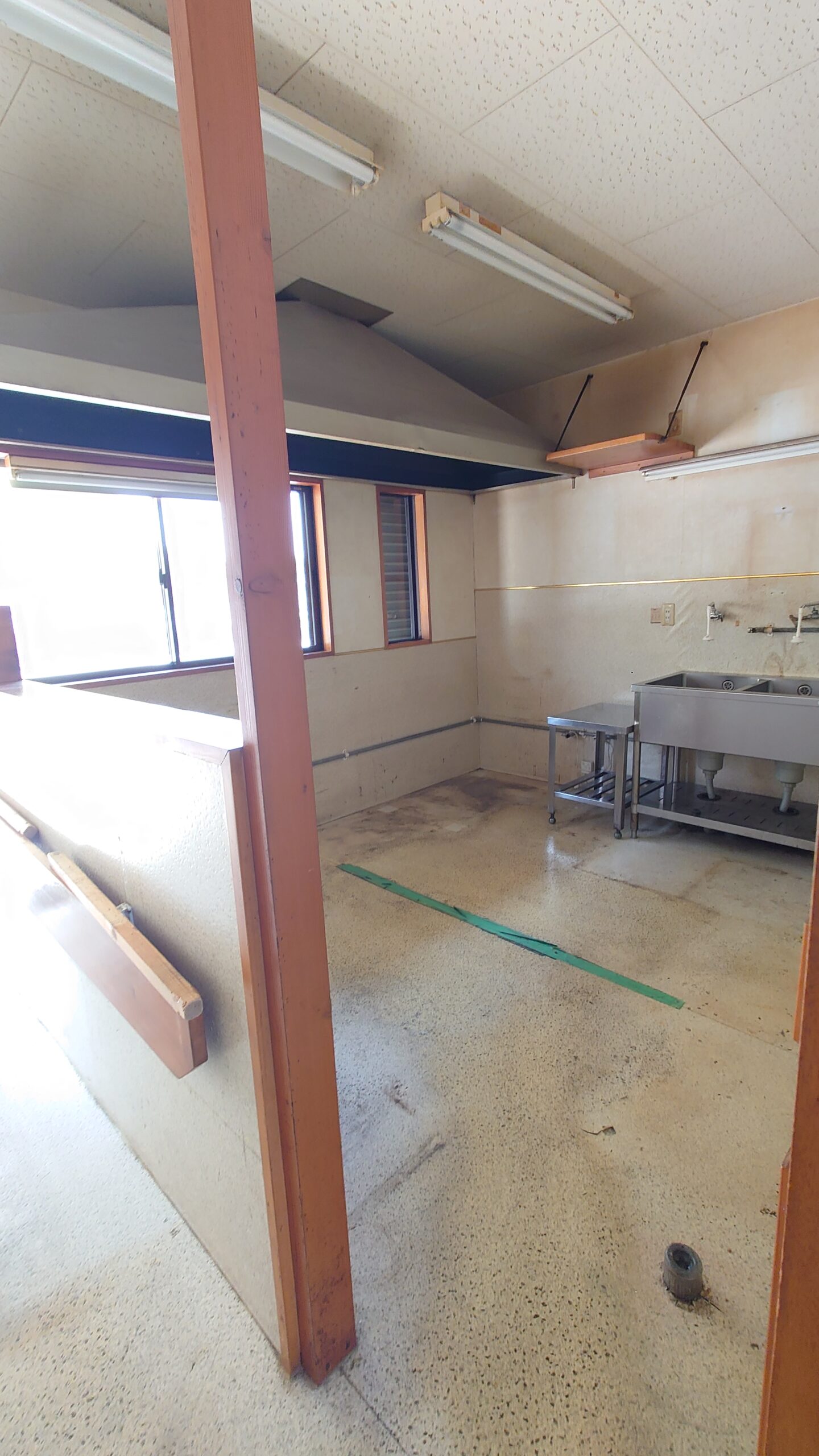 - 現況渡し、修繕要。一部共用利用の設備有。照明器具(室内逆富士3灯・店舗入口前1灯)大型換気扇1台。入口シャッター付。看板ポール等 賃借人で管理要。トイレ無の為 賃借人負担で対応要。
