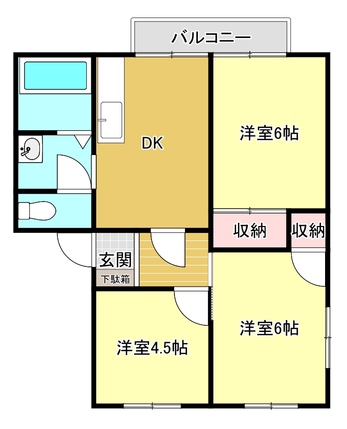 - 床面積:50.66㎡(坪)・専用庭 約28㎡ (8.47坪) 3DK(DK6帖 ・洋室6帖・和室6帖・洋室4.5帖)
